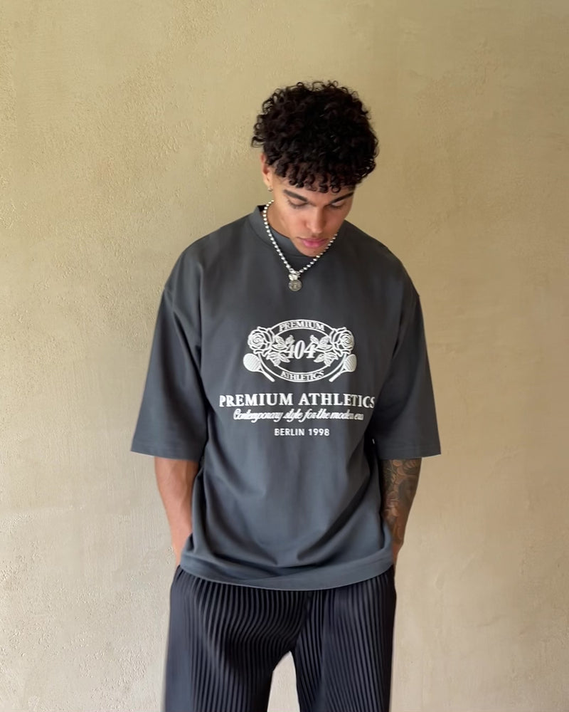 The Premium Athletics Heritage T-Shirt from 404 is defined by the heritage-inspired athleisure motifs with a distinctive puff-print twist. This piece offers luxury comfort and style for any occasion with its premium 240 GSM cotton construction, box fit design, and twin-needle stitch.
