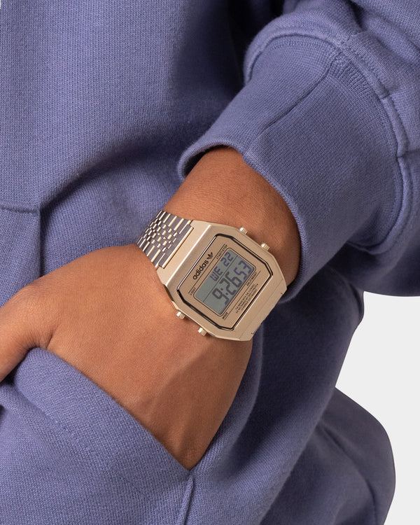 A throwback to when the digital age was kicking into gear, the Digital Two 36MM from Adidas is a retro-inspired piece modernised. A 36mm digital face features on a stainless steel strap and clasp closure with a sleek gold finish. Made for the active and high-paced, this watch keeps up with your day.
