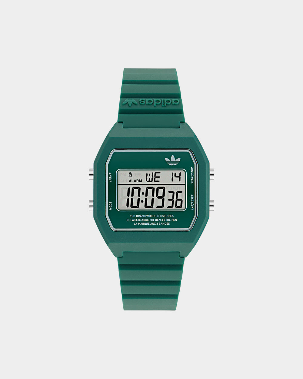 An 80's retro digital vibe coming straight from Adidas originals' rich archive and combined with a modern flair. With a resin strap, the Digital two-watch is a fun accessory with serious timekeeping features including time and date display, alarm, and chronograph functions. Grab yours today at Culture Kings.