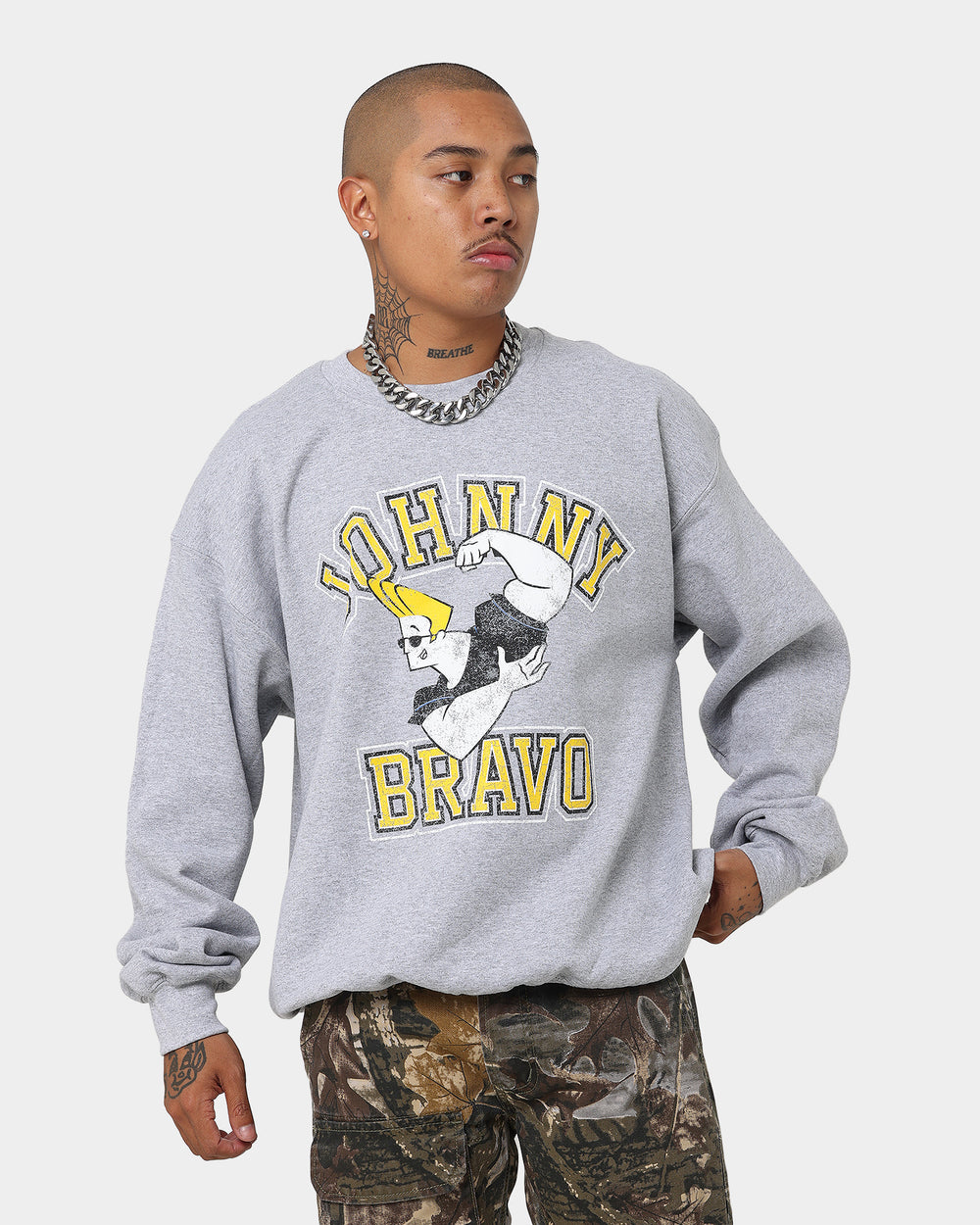 Step out with all the swagger of your favourite, iconic Cartoon Network character with the latest collab - American Thrift X Johnny Bravo! The American Thrift X Johnny Bravo Johnny Bravo Crewneck features printed graphics for eye-catching detail, and dropped shoulders for a classic streetwear vibe. With ribbed trims to lock in the warmth, this jumper is made for comfort and style every day. Cop yours today!