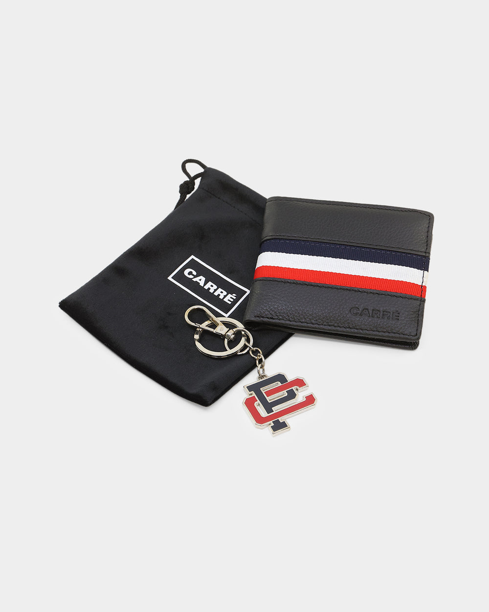 Keep your cards and keys in check with the Classic Wallet and Keychain Set from Carre. Featuring an embossed logo, ribbon detailing on leather with multiple card slots and a metal keychain. Cop it today.