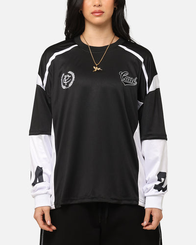 Make the ultimate statement in the Football Layered Long Sleeve T-Shirt by Carre. Created to stand out, this tee boasts inspiring printed graphics on an incredibly soft cotton tee with contrast white long sleeves that gives you a double-layered look. It is complemented with dropped shoulders to keep the laidback, streetwear vibes going. Cop yours today at Culture Kings, only while stock lasts.