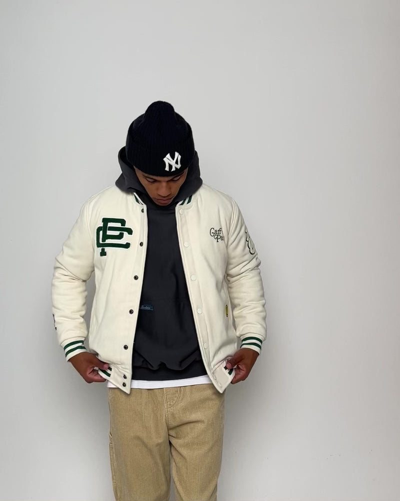 The Peace Varisty Jacket brings the greatest revolution of them all. Chenille patches and embroidered branding feature on the front, sleeves and back of this retro-styled jacket. With a wool blend this jacket is easy to layer on those colder days. A ribbed neckline, cuffs and hem ensure this is made to last. Cop yours today!