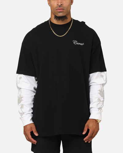 Make the ultimate statement in the Rosebowl Layered Long Sleeve T-Shirt by Carre. Created to stand out, this tee boasts inspiring printed graphics on an incredibly soft cotton tee with contrast white long sleeves that feature puff printed graphics that gives you a double-layered look. It is complemented with dropped shoulders to keep the laidback, streetwear vibes going. Cop yours today at Culture Kings, only while stock lasts.