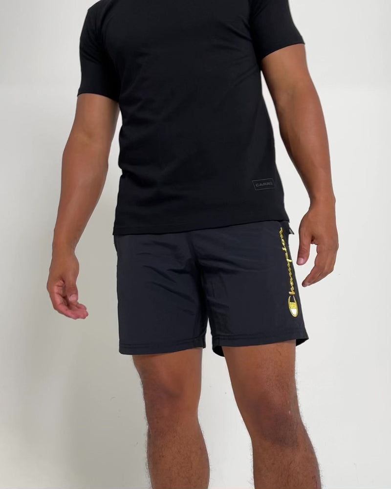 The LFS Nylon Shorts from Champion feature their signature logo embroidery. With a straight leg and elasticated waistband, these pants are easy to style and comfortable to boot. Cop them before stocks disappear!