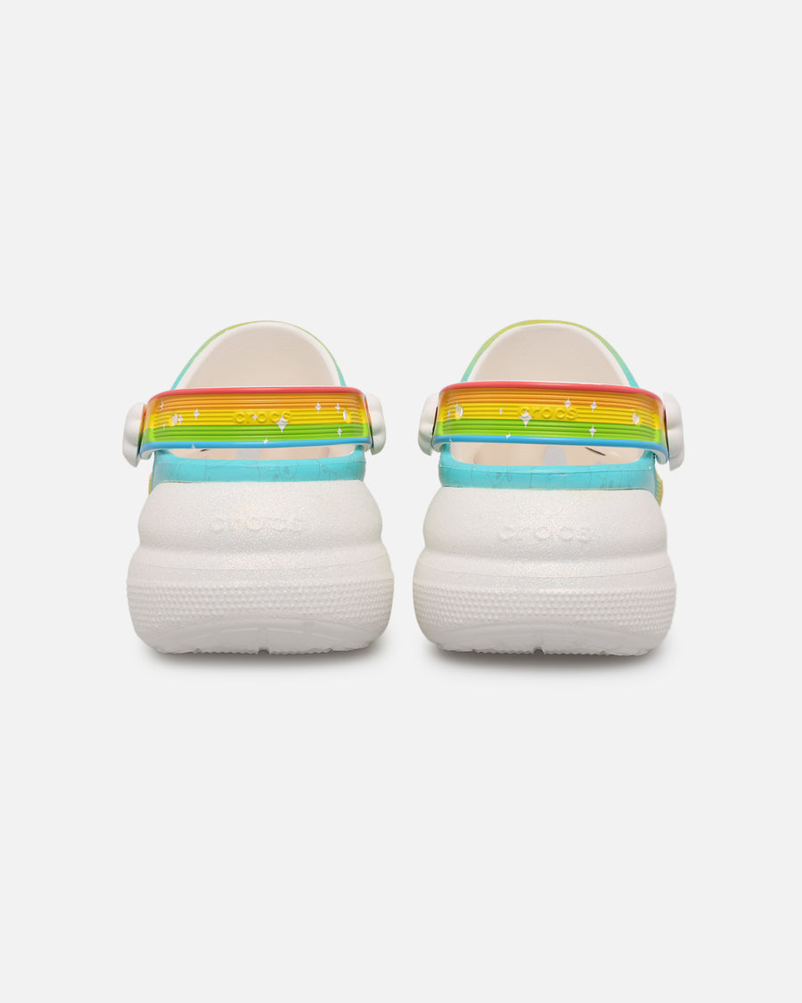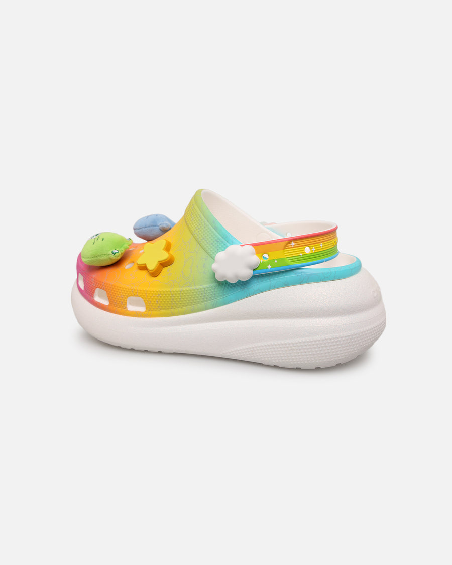 For a fresh new take on your favorite clog, look to the Classic Crush Clog. Featuring added height and a bold design, this dynamic new clog offers many personalization options, with the Care Bears-inspired print features a collection of unique Care Bears Jibbitz™ pins on the upper and the pivoting backstrap. The Crocs comfort you love, plus an extra dose of height, attitude, and style.