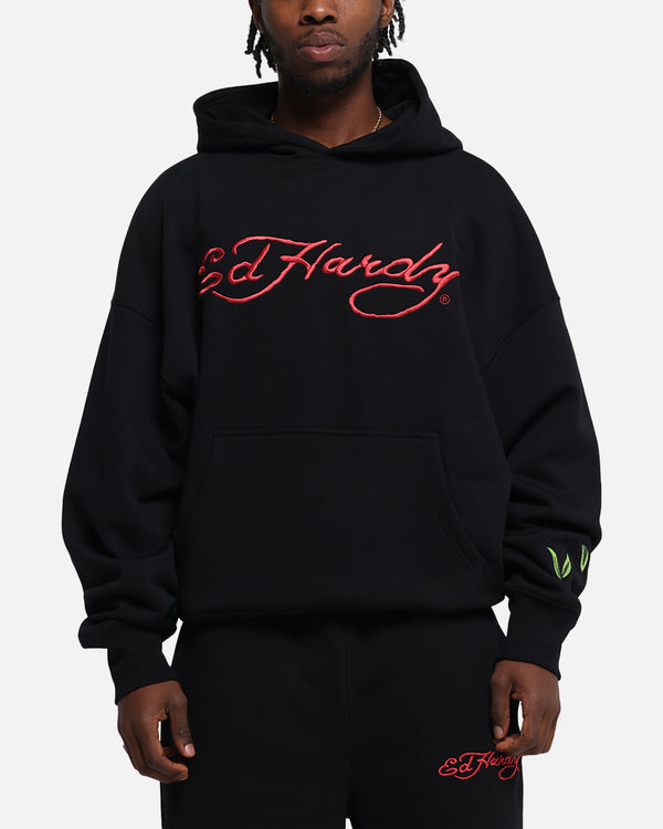 Embrace your unique vibe with the Ed Hardy Cherry Hoodie—where edgy design meets everyday comfort. This striking hoodie features bold embroidered and printed graphics across the front inspired by Ed Hardy’s iconic tattoo art. Crafted from a cozy brushed fleece interior that is perfect for that extra warmth. The oversized boxy fit and ribbed trims ensure you stay comfortable while making a statement, no matter the occasion. Cop yours today at Culture Kings.
