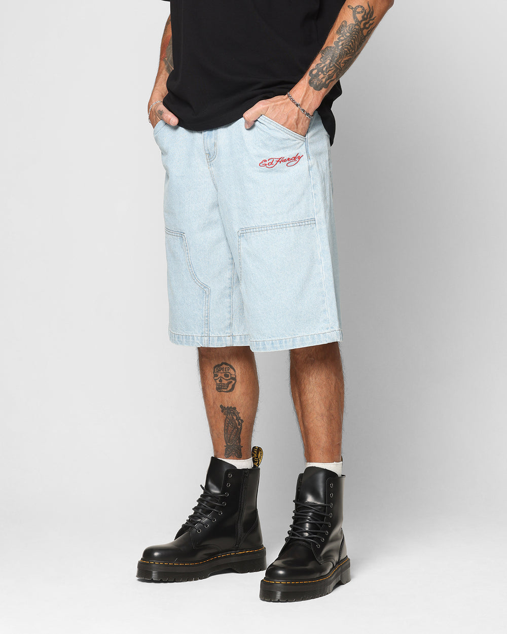 Dive into a world of bold expression with the Ed Hardy Denim Dragon Jorts. Infused with embroidered graphics to showcase the brand's iconic tattoo art, these jorts combine edgy style with exceptional comfort. Crafted from premium denim, with a relaxed fit and perfect length, they offer versatility for both casual outings and adventurous summer days. Cop yours today at Culture Kings.