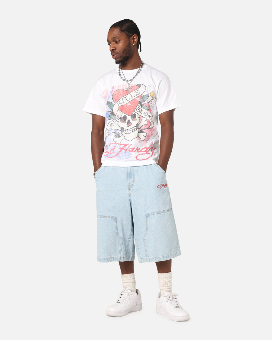 Elevate your casual wardrobe with the Ed Hardy Love Kills Slowly Vintage T-Shirt —a bold blend of iconic design and top-notch comfort. This premium cotton tee features striking printed graphics that pay homage to Ed Hardy’s legendary tattoo artistry blending the laidback, streetwear vibes. Finished with twin needle stitching and a ribbed crewneck for it to outlast the rest. Make a statement and cop yours today at Culture Kings.
