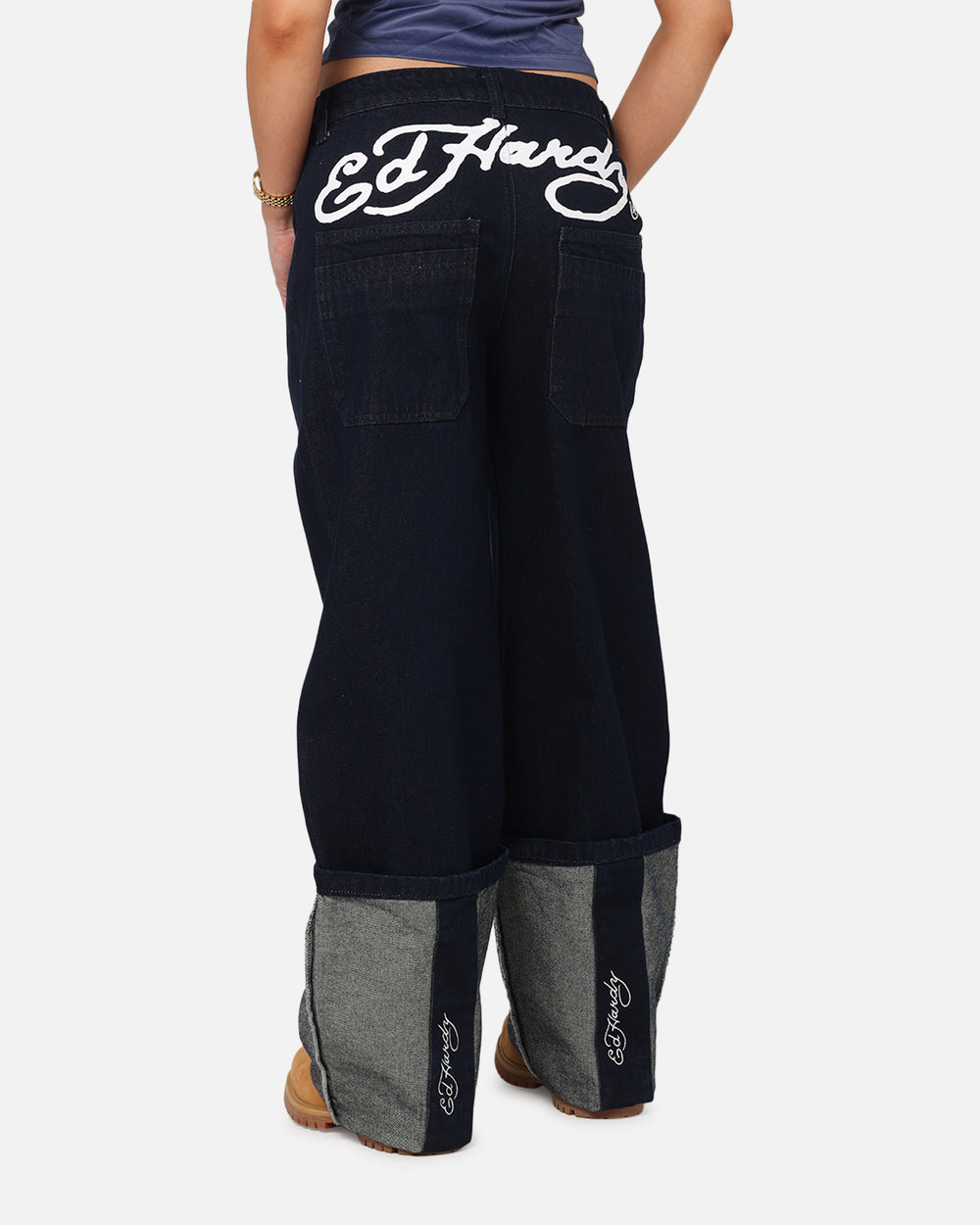 Step up your style game with the Ed Hardy Women's Cuffed Jeans—where classic craftsmanship meets bold artistic expression. Designed to celebrate individuality, these jeans feature unique embroidered and printed graphics that celebrate the artistic tattoo designs of Ed Hardy and details that make a statement with every wear and the flared wide-leg fit that blends the effortless streetwear style. Finished with premium denim construction with a rolled up cuffed ensures you stand out from the rest. This is a must-have in any wardrobe.
