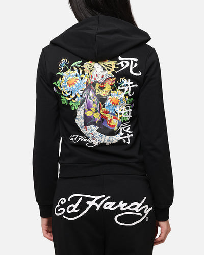 Embrace your unique vibe with the Ed HardyWomen's Flora Zip Hoodie. Featuring stunning graphics inspired by Ed Hardy’s legendary tattoo designs, capturing the spirit of individuality and self-expression. This hoodie is designed for those laid-back days when you want to feel as good as you look. The slim fit and ribbed trims ensure you stay comfortable while making a statement, whether you're lounging at home or out and about. Cop yours today at Culture Kings.