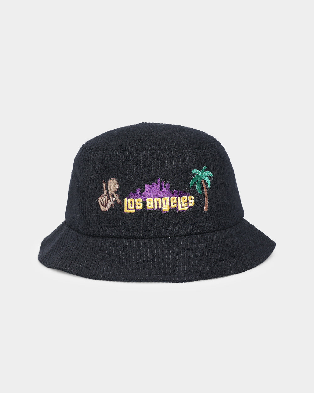 Visit the city of angels in the Los Angeles Cord Bucket Hat. Corduroy fabric keeps your head warm and adds texture with a city graphic embroidered to the front to finish off your 'fit.