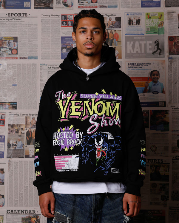 Prepare to embrace the chaos with the Marvel Venom The Venom Show Premium Hoodie. Scarily awesome custom-printed graphics on the front, back, and sleeves. Crafted with ribbed trims to keep in the warmth and dropped shoulders for that streetwear look. Start forming your symbiotic relationship with this hoodie and secure yours today at Culture Kings, while stock remains.