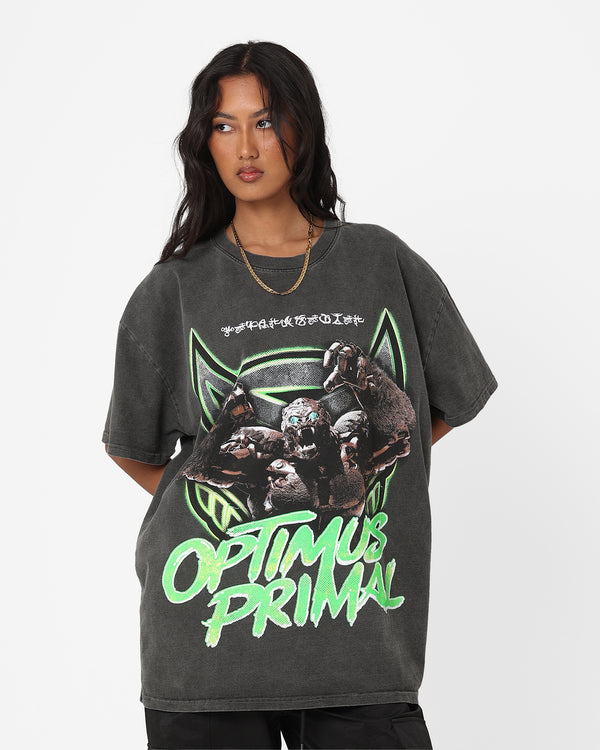Pick your side with the exclusive Goat Crew X Transformers collab at Culture Kings. The Optimus Primal Heavyweight Vintage T-Shirt features cold custom printed graphics of Optimus Prime in his beast mode on the front and his classic mode on the back, it's finished off with drop shoulders for an off-duty look and twin-needle stitching on a premium cotton construction so you know this tee could outlast even Megatron. Cop yours today at Culture Kings.
