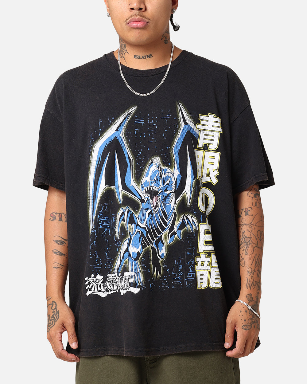 Get your hands on one of the most powerful engines of destruction with the Blue Eyes White Dragon tee from the Goat Crew X Yu-Gi-Oh! collaboration. Featuring custom graphics on the front and back with dropped shoulders to finish it off. Embrace this awesome creature and live to tell the tale by copping a tee from this drop. Only available at Culture Kings.