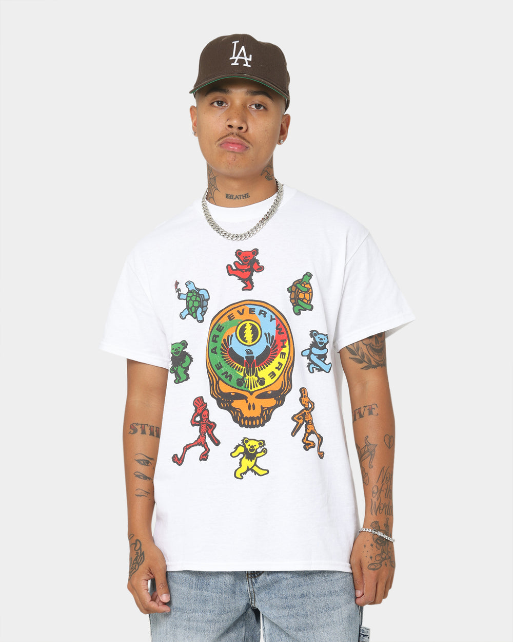 The Grateful Dead present the We Are Everywhere T-Shirt to you. Featuring sick custom graphics in tribute to the rock band, this tee is finished with premium construction to last you through the ages.