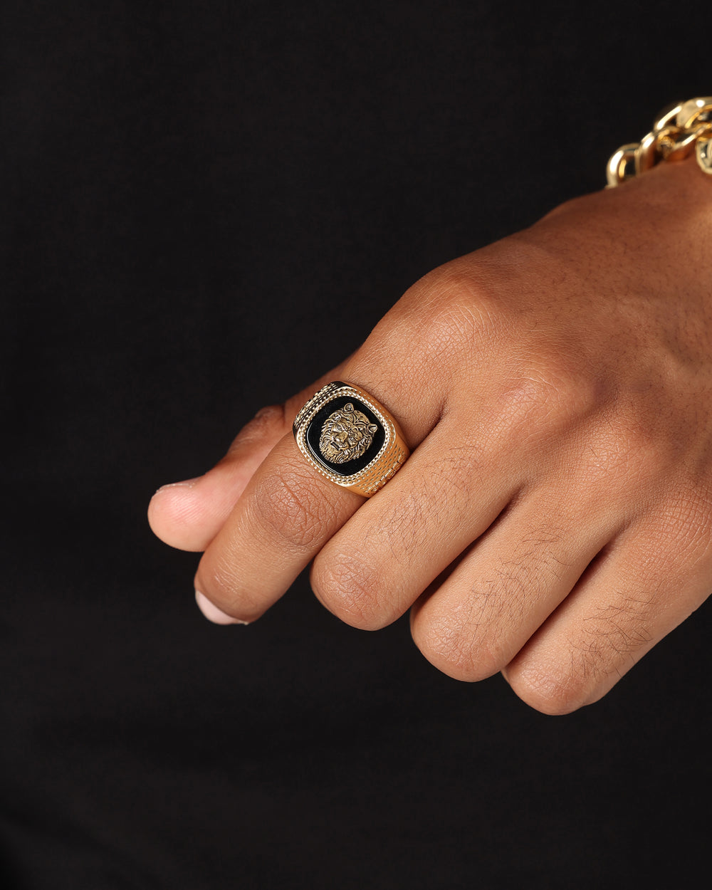 Add a touch of luxury with the Lion King Ring. The Lion head design featured is anything but temporary on a premium piece. Crafted with surgical grade stainless steel and a gold-tone polished finish to put a spotlight on your 'fit, this piece is the perfect statement on its own or layered.