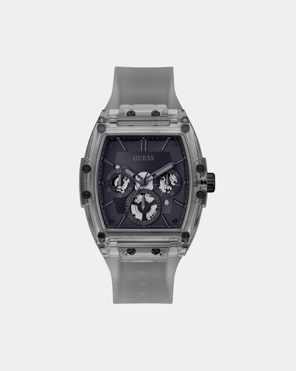 Top your look with this classic timepiece from Guess. The sporty-looking silicone bracelet and dial are the perfect way to take your fit to the next level. Practical as well this watch features water and shock resistance so you know it's ready to take on whatever the day throws at you.