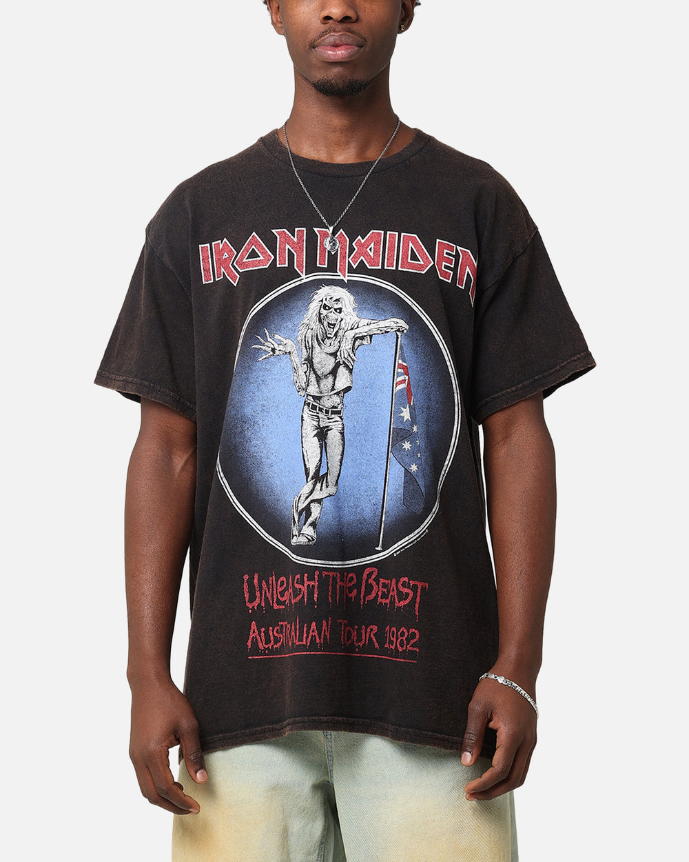 Bring back the classic heavy metal vibes with the Unleash Tour Vintage T-Shirt by Iron Maiden. This tee features epic printed graphics repping the bands 'Unleash The Beast' 1982 Australian tour. Constructed on a super soft and comfortable cotton and you know it rocks dropped shoulders for that laidback look. This is a must-have for any true Iron Maiden fan, so grab yours today before stock runs out.