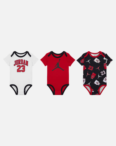 Introducing cute and cosy Infant Jumpamn 23 Jersey Bodysuit Set 3 Pack from Jordan. These bodysuits feature a snap button and printed graphics set to help keep your little one stylish, warm and comfortable from head to toe. Cop yours today at Culture Kings.