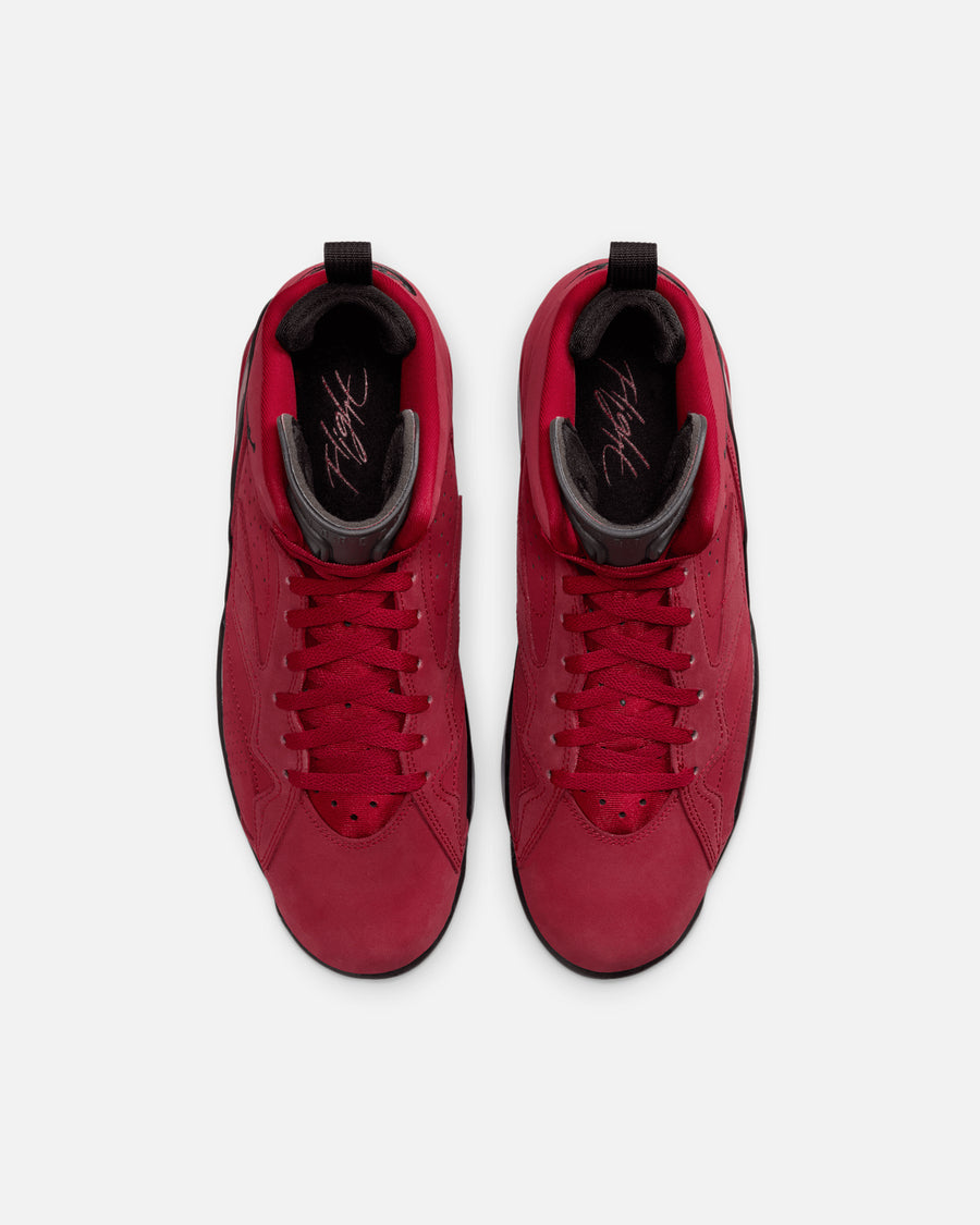 - Upper is a mix of AJ6 and AJ7 elements: the tongue top and modified overlay reference the AJ6 while the semi-bootie lining homages the AJ7