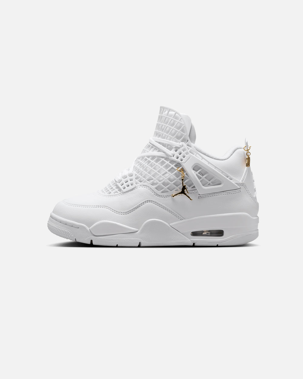 This bold update to the AJ4 turns a classic into a showstopper. Premium materials like soft, supple leather give these kicks a luxurious look and feel. Gold details like a detachable Jumpman tag pop against the Triple White upper, putting all eyes on you. Lace 'em up and step into nothing-but-net style. Cop yours today at Culture Kings.