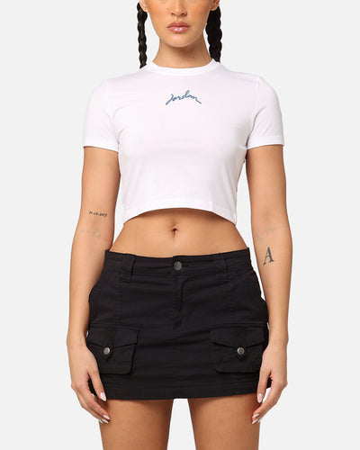 Elevate your look this season with the Short Sleeve Graphic Slim Crop T-Shirt from Jordan. Knowing not to go over the top, this cropped tee keeps the graphics clean and simple, leaning into that minimalistic look. The twin needle stitching and crew neckline also ensure its a piece made to last. Cop yours at Culture Kings!