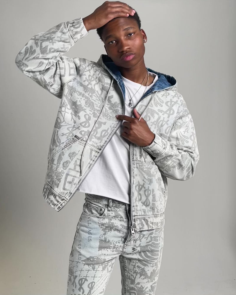 Introducing the most epic denim zip through hoodie jacket you can find. This oversized, boxy fit, hooded jacket features elasticated hem and sleeve cuffs, quilted interior, front pouch pockets and a double ended zipper closure. Made from a premium cotton denim with a light acid wash. The Kollage Zip Jacket Icey features a Ksubi original artwork inspired by the re-usable nature of the dada art movement. Finished with signature t-box and 4x4 embroidery and Ksubi branded hardware. Grab yours today at Culture Kings.