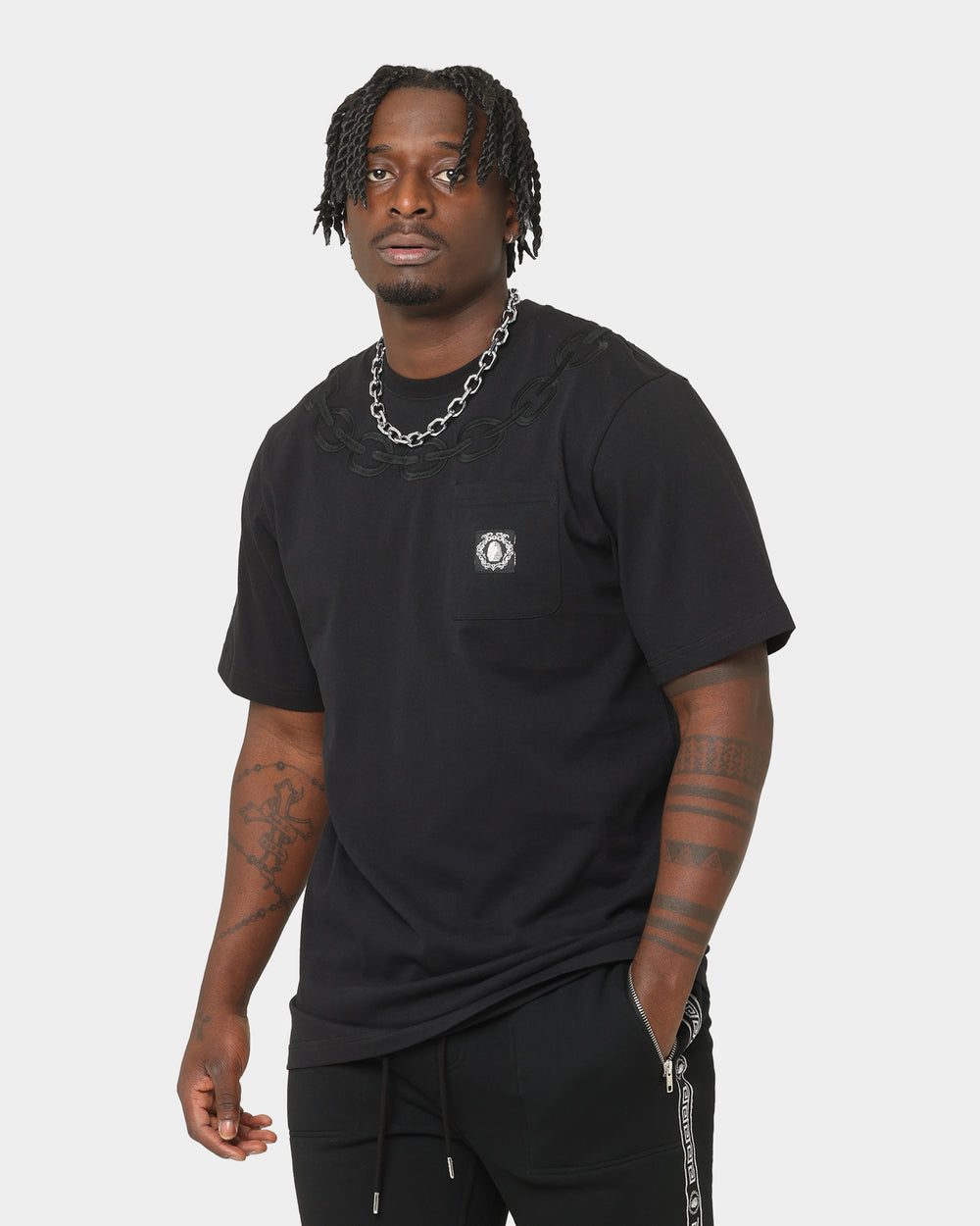The details of the Chain Short Sleeve T-Shirt make this tee a premium piece. The branded tag to the chest pocket compliments the embroidered chain detailing along the collar. Don't miss out on this one, cop it today!