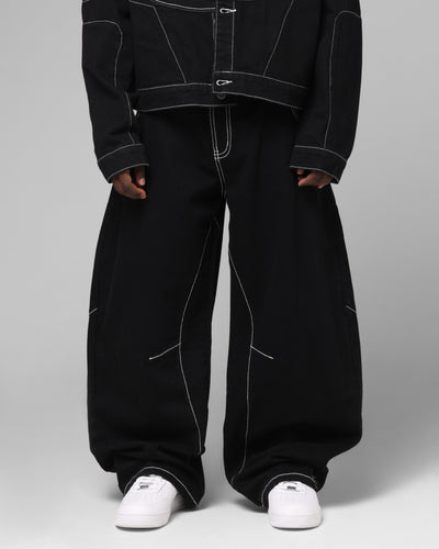 Elevate your fits' with the latest drop at Loiter. The Biker Raver Jeans features contrast stitching on a denim construction which pairs perfectly with the ultra baggy wide leg fit for a look that is out of this world. Finished with a classic five pocket styling for all your daily essentials. Don't sleep on these.