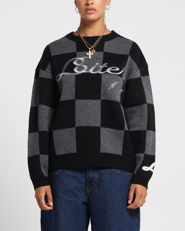 The Checker Knit Sweater keeps things simple with its all-over checkered print. The knitted design is sure to keep you warm through the season while the ribbed cuffs, hem, and crew neckline ensure its durability. Finished with embroidered graphics on the front for a striking look. Cop yours today!