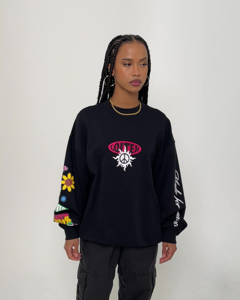 Find your inner peace with the Day Dream Crewneck from Loiter. With custom retro-inspired embroidered and printed graphics through the front, back, and sleeves, this crew brings old-school along with it. Cosy and comfortable with heavyweight french terry cotton and a boxy, oversized fit. Secure this sweater today and elevate your streetwear 'fits.