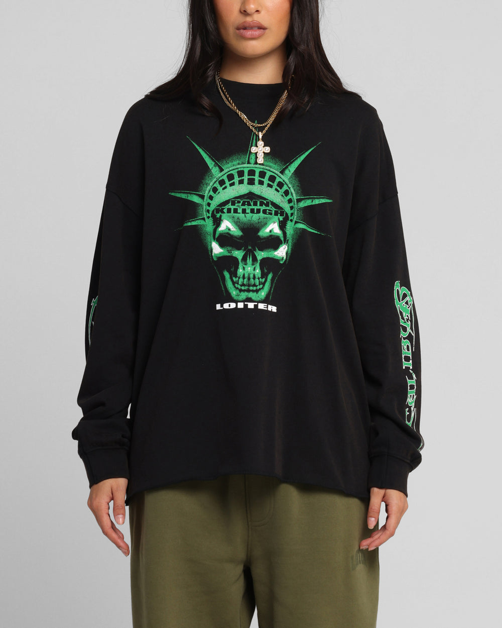Make the ultimate statement in the Liberty Long Sleeve T-Shirt by Loiter. Created to stand out, this tee boasts inspiring printed graphics on an incredibly soft cotton long sleeve tee with dropped shoulders to keep the laidback, streetwear vibes going. Cop yours today at Culture Kings, only while stock lasts.
