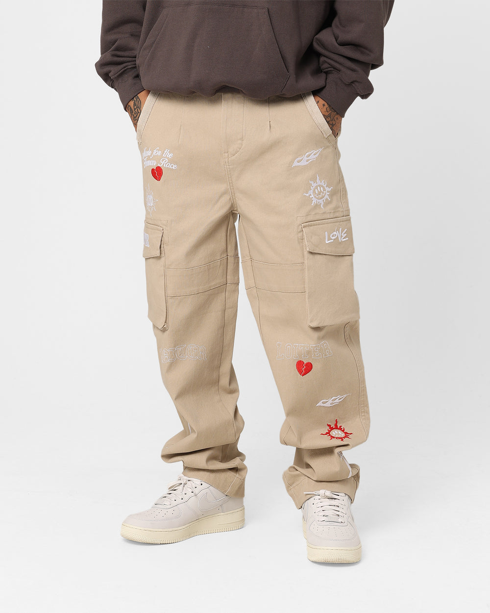 Loiter is always ahead of the game, and these pants are no different to their usual. The Sketch Cargo Pants feature embroidered graphics throughout with button close cargo pockets for all your essentials and heavy cotton webbing straps around the legs for a standout vibe. Grab yours today at Culture Kings.