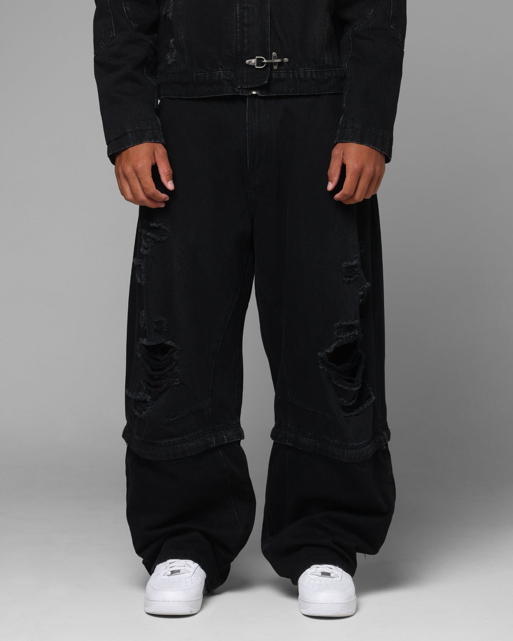 Take your fits' to the next level with Thrasher Pants by Loiter. These pants feature a subtle woven brand label towards the back with distressed details throughout. Constructed on a rigid denim and zip closure leg openings for the option to turn into jorts, ready for any occasion. Cop yours today at Culture Kings.