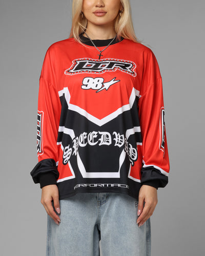 Cop the Thrill Racing Long Sleeve T-Shirt for the perfect blend of street and sportswear. This long sleeve tee features a mix of embroidered and printed graphics topped with rhinestone details for a subtle flex. Finished with ribbed crewneck and cuffs and twin needle stitching for extra reinforcement. Cop yours today at Culture Kings.