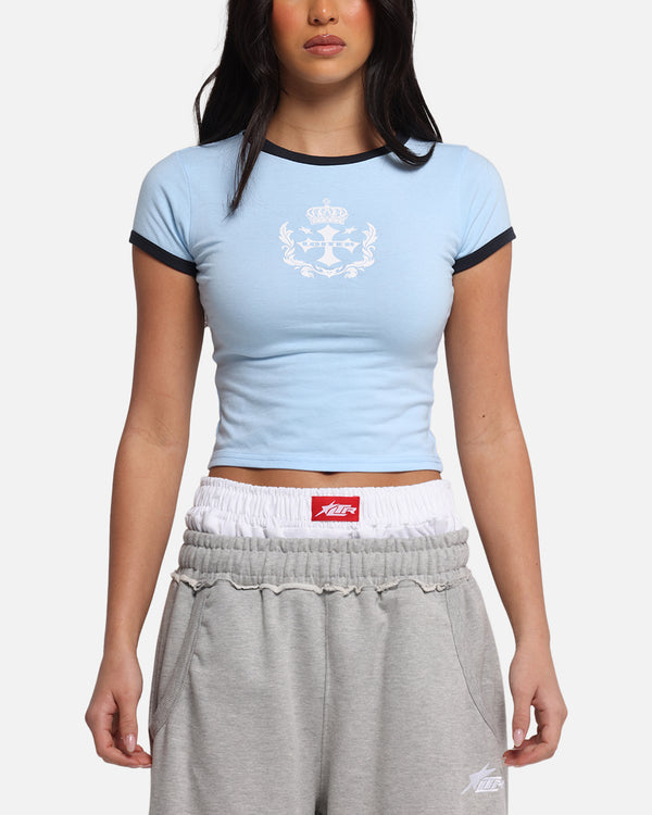 Level up your fits' with the Women's Purity Baby T-Shirt by Loiter. Featuring fire-printed graphics with contrast ribbed crewneck and cuffs for a classic look. Finished with twin needle stitching for extra reinforcement. This is the must-have piece of the season, get your hands on it today.