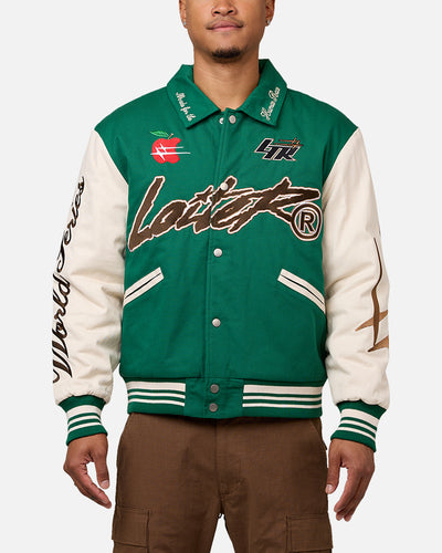 Stay warm while looking fresh and who better to heat up your wardrobe than Loiter! This jacket features a mix of embroidered graphics and stitched appliqués that'll get you all the compliments, contrast cuffs and hems add a little something extra and the snap button closure finishes off the classic varsity jacket vibe. Cop yours today at Culture Kings.
