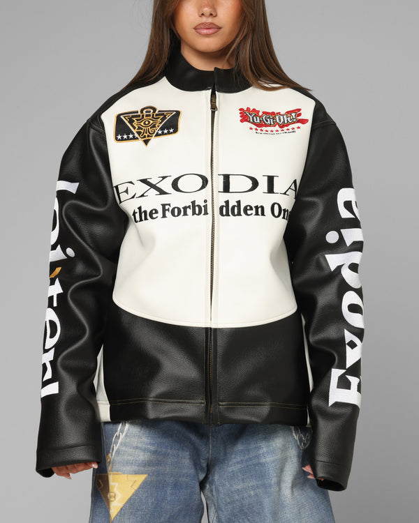 Get your hands on the Loiter X Yu-Gi-Oh! Exodia Biker Jacket. Made from a vegan leather with contrast stitching for a classic look. Featuring custom embroidered graphics and a full zip up close for a customise look. Cop yours today at Culture Kings.