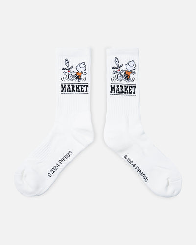 The Peanuts Snoopy Charlie Dance Socks from Market are a stylish addition to your sock collection. With printed graphics alongside ribbed cuffs and cushioned padded foot on a classic crew length sock.
