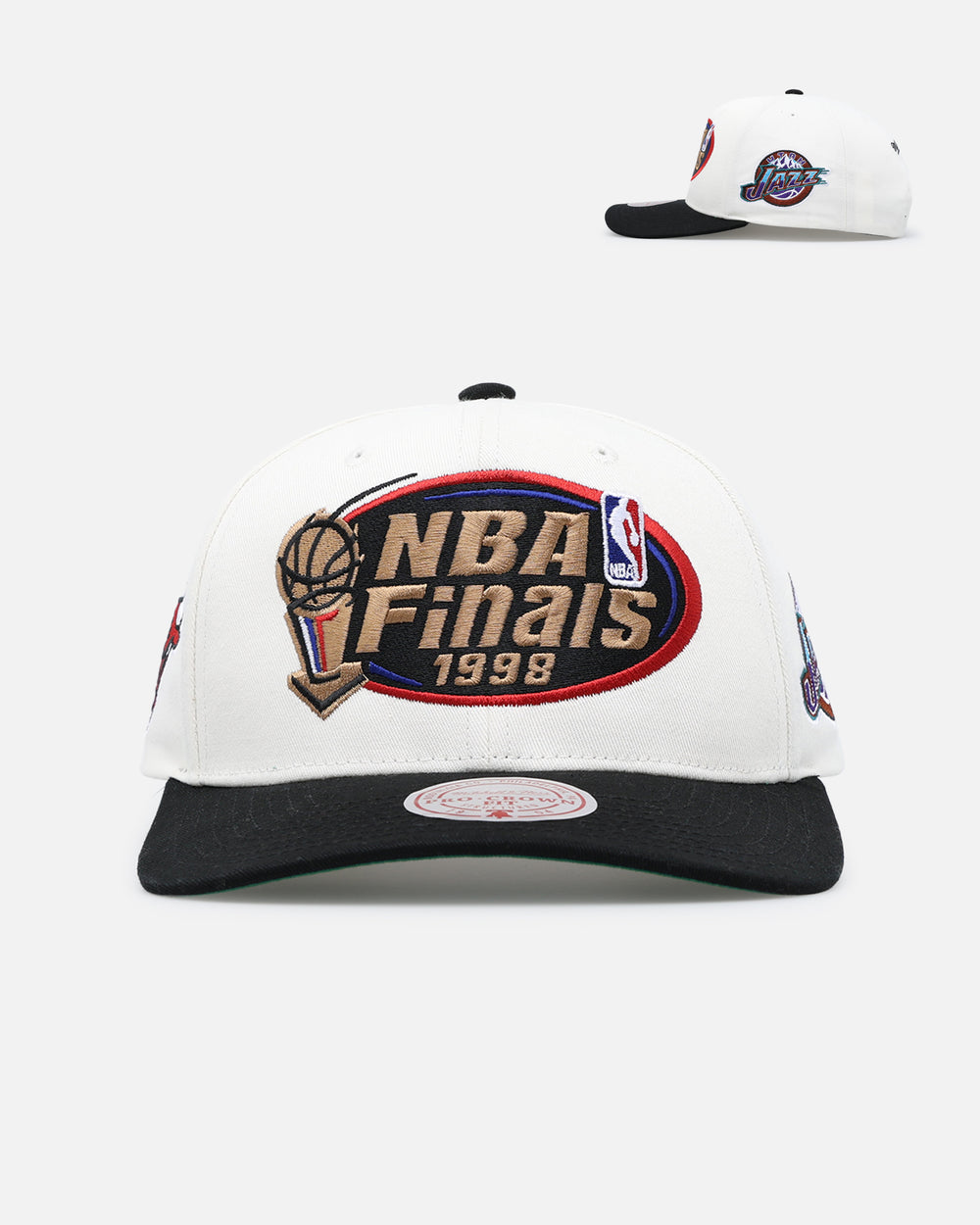 Throw it back to '98 in this rad Mitchell & Ness cap. The 1998 NBA Finals Snapback Hat has breathable eyelets, an adjustable snapback, and embroidered team graphics throughout featuring the Chicago Bulls and Utah Jazz. Cop yours today at Culture Kings.