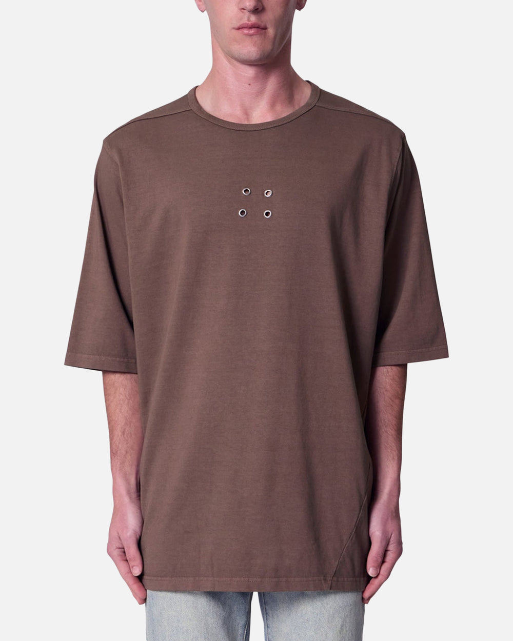 Elevate your fits' with the 4 Eyelets Tee by MNML. This tee features a flat hem line and an extended sleeve length for an oversized fit, four metal eyelets in the chest, and is finished in a garment washed cotton fabric. Cop yours today at Culture Kings.