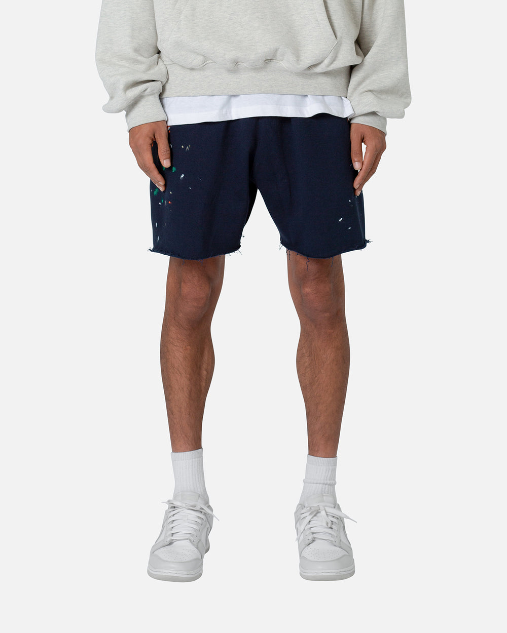 These sweats are perfect for any season with their versatile design. Made from a custom-knit French terry fabric, they are designed to keep you comfortable no matter the occasion. Pair that with the elasticized waistband and adjustable cotton drawstring and you won't go back. Finished with a multi-colour paint splatter, contrast panelling at the inseam, and raw edge hems for a look that stands out.