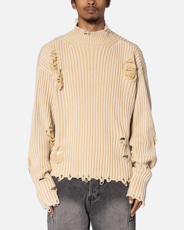 Keep cosy with the Distressed Crop Knit Sweater by MNML. This sweater is a custom-knit sweater that is constructed from a ribbed polyester fabric. It features a mock neck design, extended sleeve length for a layered look, distressing details throughout, and dropped shoulders for a streetwear look. Cop yours today at Culture Kings.
