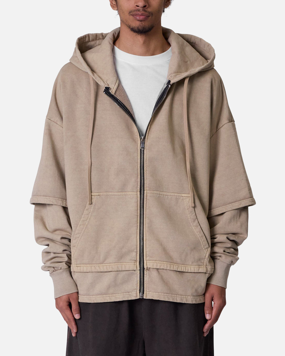 Cosy up this season with the Double Layer Zipper Sweater by MNML. This hoodie is designed from premium cotton french terry, with a full zip-up close, a kangaroo pocket that is split onto both sides, constructed with a double layer effect on the sleeves, and is finished with a faded garment wash. Cop yours today at Culture Kings.
