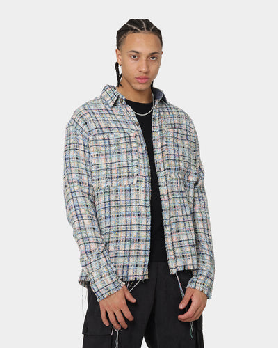 Give your 'fits a unique finish with the Raw Edge Flannel Shirt. The tattered yet comfortable fabrication paired with raw edges to the pockets, cuffs, and hemline will set your style apart. Designed with an oversized fit and slightly dropped shoulders to give it that laid-back vibe.