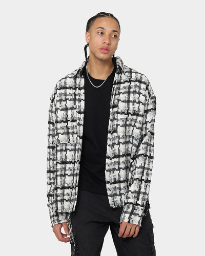 Give your 'fits a unique finish with the Raw Edge Flannel Shirt. The tattered yet comfortable fabrication paired with raw edges to the pockets, cuffs, and hemline will set your style apart. Designed with an oversized fit and slightly dropped shoulders to give it that laid-back vibe.