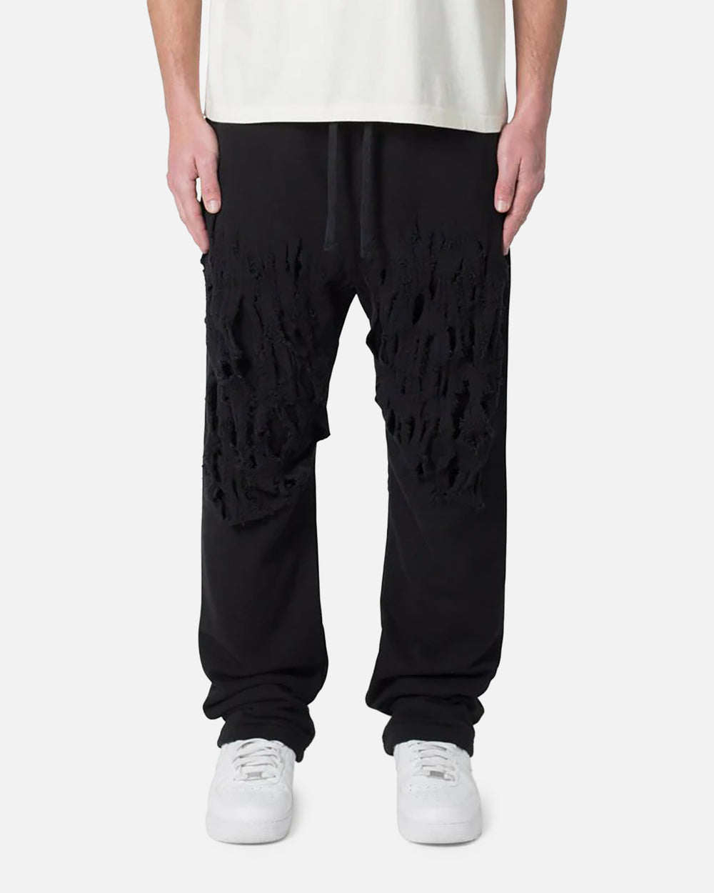 The Shredded Layered Baggy Sweatpants are designed with a relaxed fit throughout, featuring an elasticated waistband, tonal cotton drawstrings, standard hem at the leg opening, heavy distressing throughout with a backing, and finished in both a washed and brushed fleece fabric. Cop yours today at Culture Kings.