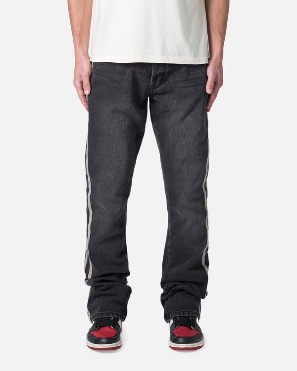 The Striped Flare Track Pants are the cop of the season! Designed witha flare fit which is relaxed through the thigh and features a slight flare at the leg opening and constructed from vintage washed black denim and finished with metallic taping at the outseam. Cop yours today at Culture Kings!