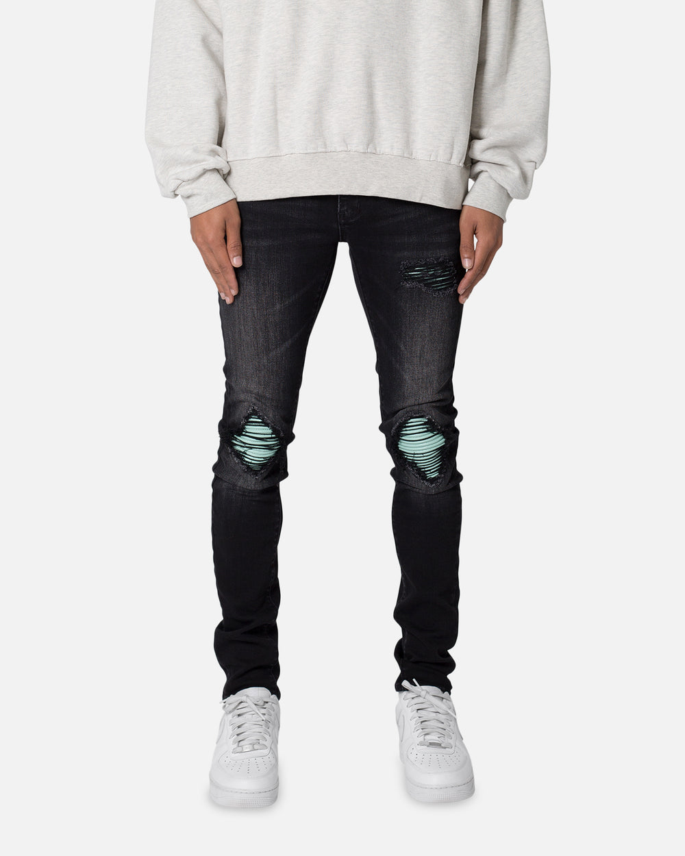 Get a look that goes hard with the X559 Skinny Moto Denim Jeans. Designed with MNML's new X fit which is skinny throughout with an extended inseam for stacking, and features distressing throughout and finished with pin-tucked poly-leather panels repairing the holes at the knees and thigh. Get your hands on a pair today at Culture Kings.